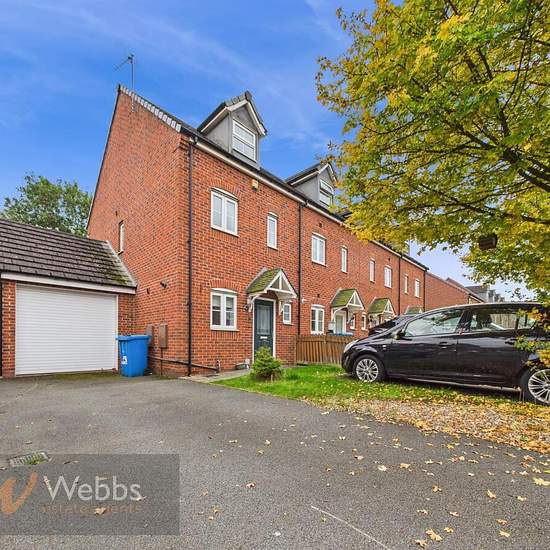 Webbs Estate Agents are delighted to offer to let, this well presented three-storey modern end terrace house, situated on a very popular development. Conveniently situated for local amenities and commuting to major road networks, this stunning home briefly comprises of; Entrance hallway, lounge diner, kitchen, conservatory & guest WC. On the first floor, there are two generous bedrooms and a bathroom. On the top floor, there is a large primary bedroom with an en-suite shower room. Externally, the property has a garden, driveway , and garage ...