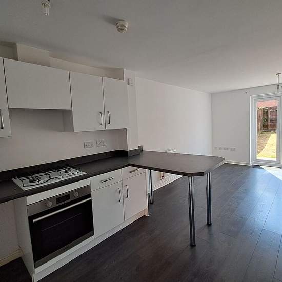 New build well presented 3 bed 3 storey terraced house unfurnished with gas central heating, 1 double and 1 single / office bedroom on first floor, modern family bathroom, shower over bath, light and airy large master on top floor with Velux windows, modern fitted kitchen with gas hob, electric oven and plumbing for washing machine, large breakfast bar open through to living room with patio doors leading to rear enclosed garden with back gate opening to parking at the back of the house as well as at the front, WC downstairs, situated in a de...