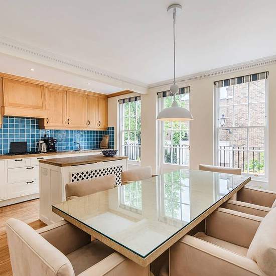 This three-bedroom home offers over 2,000 sq ft of internal space including a rare integral garage, alongside a series of generous rooms that feel elegant rather than overstated. The raised ground floor is centred around a welcoming kitchen and dining room, designed as a sociable everyday space. Fitted with classic cabinetry and built-in appliances, it incorporates a breakfast bar and opens onto a small balcony overlooking Ormonde Place, bringing a sense of light and outlook that is often absent at this level. At the front, a separate home o...