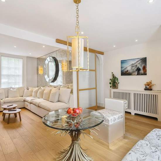 This elegant Chelsea townhouse is arranged over four floors and combines classic period character with refined contemporary touches. The principal raised ground floor reception space is bright, welcoming, and beautifully proportioned, featuring wood flooring, two fire surrounds, and soft neutral décor. The lower ground level provides an excellent kitchen and dining space, fitted with sleek cabinetry and offering direct access to the private terraced garden, which is thoughtfully landscaped to create inviting areas for outdoor dining and rela...