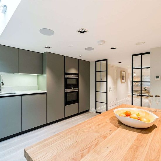 This town house has been completed to a very high standard and consists of three bedrooms, all with built in storage and one with an en-suite bathroom. The house also benefits from two reception room, one on the ground floor which leads directly to a private terrace. The second reception room leads from the fully fitted kitchen.