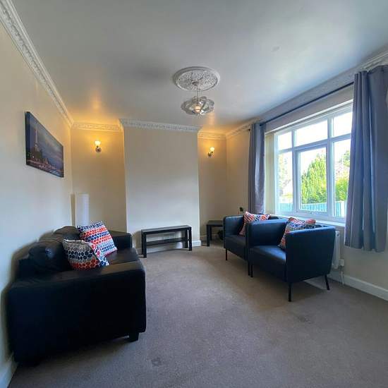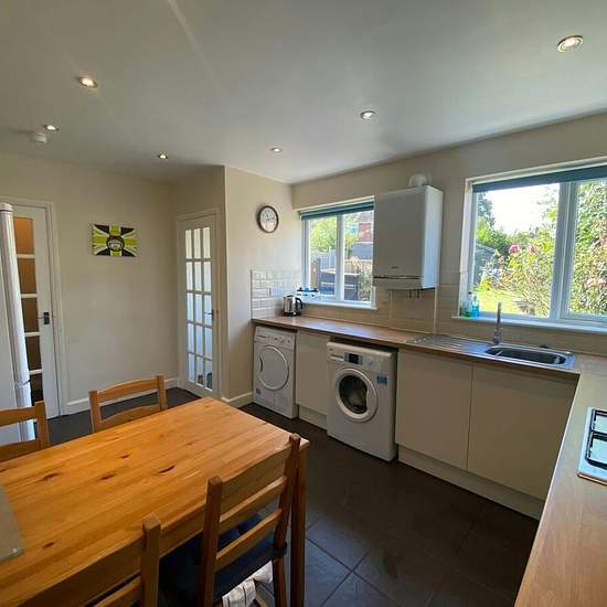 Students - Available September allowance. A great 3 bedroom property situated centrally between Keele University and Newcastle town centre, just over a mile to Keele. The property is finished to a very high standard, the front entrance leads you into a lounge with black leather effect sofas and tv unit. A very modern fitted kitchen with electric cooker, washing machine and dryer. Dining Furniture and storage. Downstairs toilet. Rear garden, a gardener is provided. All 3 bedroom are upstairs, all have double beds and ikea style desks, wa...