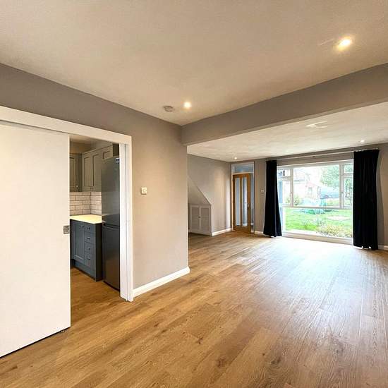 A newly refurbished and modernised three-bedroom home arranged over two floors, offering generous living space and a practical, well-balanced layout. The ground floor features an impressive 23 ft sitting/dining room, creating a bright and spacious open-plan area ideal for both everyday living and entertaining. To the rear is a newly fitted kitchen with ample cupboard and worktop space, complete with a washer dryer, dishwasher and freestanding induction cooker. A conservatory provides an additional reception space, well suited as a dining are...