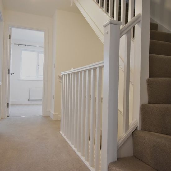 The ground floor includes a welcoming entrance hall, a stylish fitted kitchen with a range of wall and base units, integrated appliances and ample worktop space, and a spacious open-plan living and dining area. French doors provide direct access to the rear garden, making the space ideal for both day-to-day living and entertaining. A ground floor WC completes this level. The first floor comprises three well-sized bedrooms, all finished in neutral tones, along with a contemporary family bathroom fitted with a white suite and shower over the b...