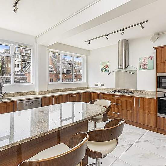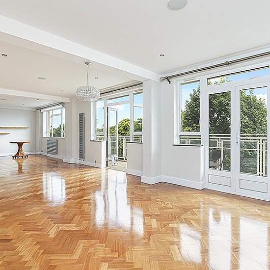 This bright and spacious property occupies the entire second floor and comprises of two bedrooms with en suite bathrooms, two further double bedrooms, a family bathroom, a guest WC, a fully fitted eat-in kitchen, and a beautiful 34 ft double reception and dining room opening out on to a south facing balcony overlooking Regent's Park. The property benefits from wood flooring, and a lift in the building. Available unfurnished. St John's Wood is a well established residential area with wonderful shops, restaurants and transport facilities prov...