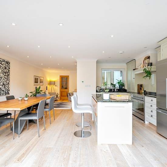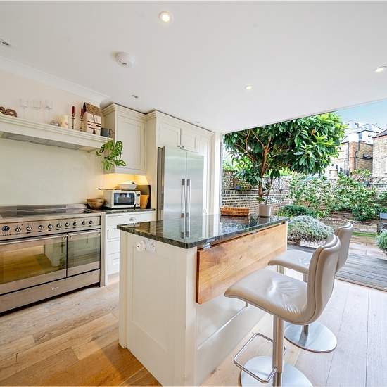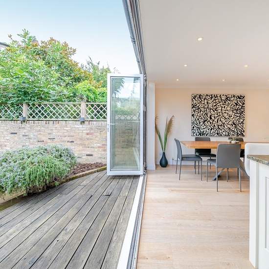 PREMIUM - An exceptional four-bedroom flat spanning 1,513 sq ft, offering a bright and spacious reception room and a stylish open-plan kitchen/sitting area with bi-fold doors opening onto a generous decked and paved garden. The property is finished to an excellent standard throughout, freshly redecorated, and beautifully presented. Arranged over two levels, it features three large double bedrooms on the lower floor, complemented by two modern bathrooms and an additional courtyard, creating a wonderfully light and airy feel. Situated on Fulh...