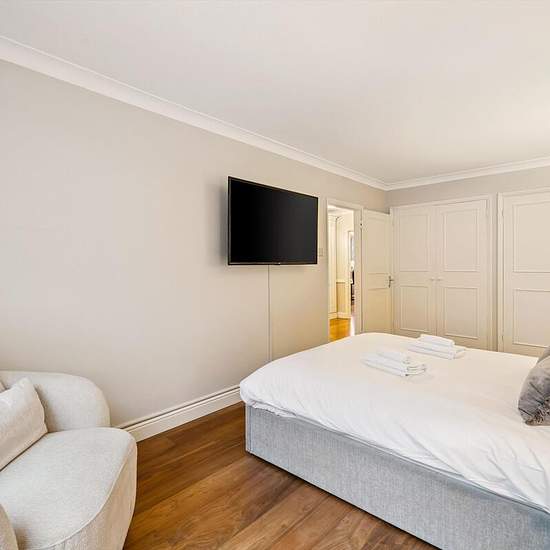 Set within a distinguished building in Chelsea, this expansive first-floor apartment offers approximately 1,759 sq ft of beautifully laid-out living space. Positioned moments from Sloane Square, this property combines period charm with modern living in one of London’s most prestigious neighbourhoods. The apartment has four generously sized bedrooms, including a substantial principal bedroom with bay windows and ample built-in storage. Each bedroom offers flexibility for use as guest rooms, study spaces, or additional living areas. At the hea...
