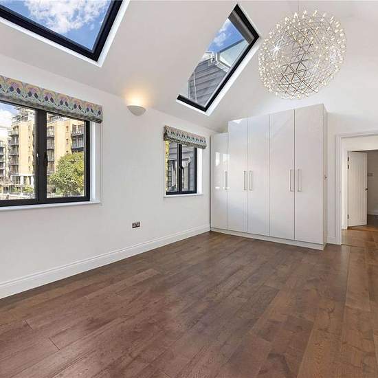 An Unfurnished four-bedroom mews cottage situated in the iconic St. Katharine Docks location along a private road. Description This distinctive end of terrace four-bedroom mews cottage is located on St. Katherine Docks. Carefully arranged over three levels with wooden floors throughout, this remarkable home offers both comfort and style. The ground floor boasts a fully equipped, modern kitchen, complemented by a separate dining area that leads to a generously sized terrace, perfect for entertaining guests. This level also features an expansi...