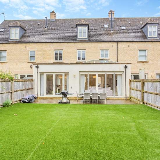 A beautifully presented four-bedroom Cotswold stone home set over three floors on the edge of the historic market town of Northleach The ground floor features a welcoming entrance hall, an open-plan kitchen/dining area ideal for family life and entertaining, and a bright living room with bi-fold doors leading to the rear garden. A useful cloakroom completes the ground floor. The first floor features two double bedrooms, both with En suite shower rooms (one also with bath), while the top floor provides two further double bedrooms and a family...