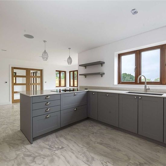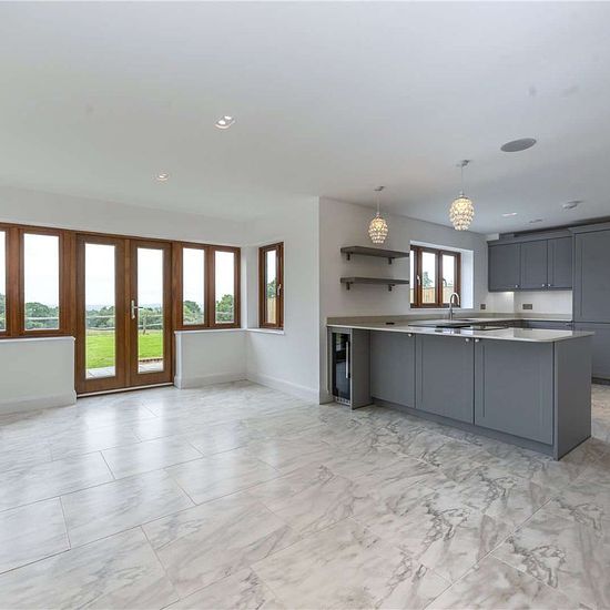 This impressive newly built, detached family home is located on the edge of the market town of Heathfield. Number 4 is one of seven detached homes in this exclusive development. The spacious open hallway gives access to the reception rooms and kitchen on the ground floor. The triple aspect reception room is light filled and benefits from beautiful rural views. The stunning, open-plan kitchen has ample wall and floor storage, high quality stone worktops and integrated appliances. Double doors lead into the reception room and separate French d...