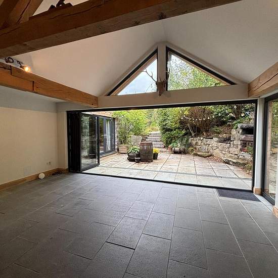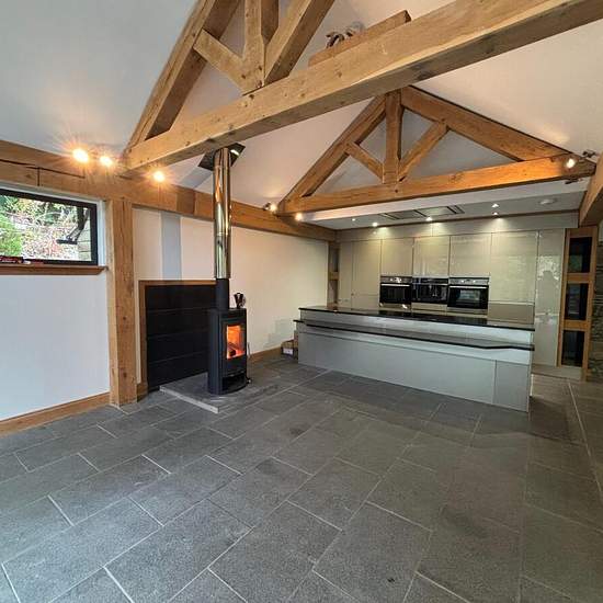 This unfurnished, 4 bedroom property comprises of; Entrance hallway leading to the main Livingroom, that is set over two floors. The lower section has been previously used as cinema room and includes a wood burning stove. Next comes the WC, utility room, and plant room, with access to the garden of the property. The kitchen/dining area follows, with bi folding doors, original beams and another wood burning stove. The kitchen is fully equipped with modern appliances. The 4 bedrooms, all have fitted wardrobes, and are all double in size. The...