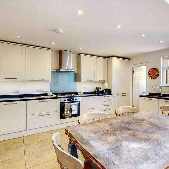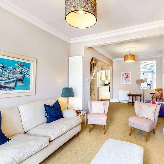 Set back from the main road is this delightful four-bedroom home boasting over 1500 sq. ft. of living and entertaining space. As you enter the property you are welcomed to the right by the double reception room with bespoke cabinetry between the fireplace in the front room. The bay window fills the room with plenty of natural light. The hallway leads to the walk-through kitchen-dining room fully equipped with integrated appliances and plenty of natural light from sky light windows and door with direct access to private garden, ideal for outd...