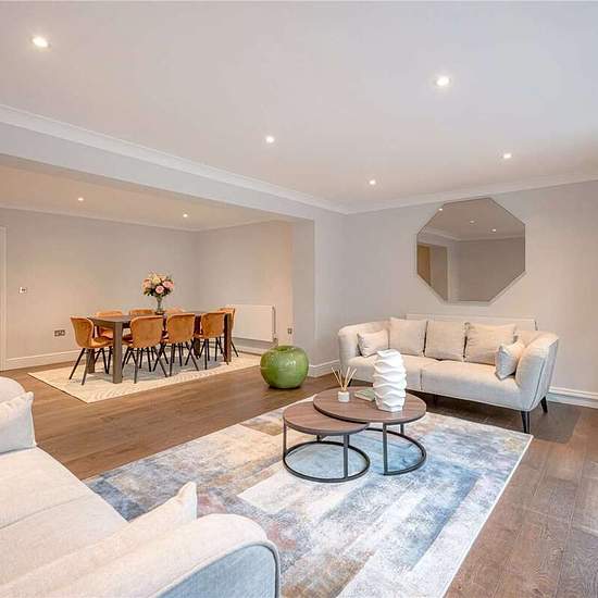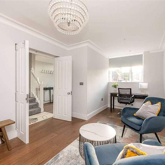 A beautifully refurbished and generously proportioned four-bedroom family home, ideally situated in this sought-after location. Offering over 2,400 sq ft of contemporary living space, the property features an inviting entrance hallway, a bright first-floor reception room with bay windows and doors opening onto a private balcony, and a separate dining room. The lower ground floor comprises a second spacious reception room with direct access to a 50 ft east-facing rear garden, along with a modern eat-in kitchen. Accommodation is arranged over ...