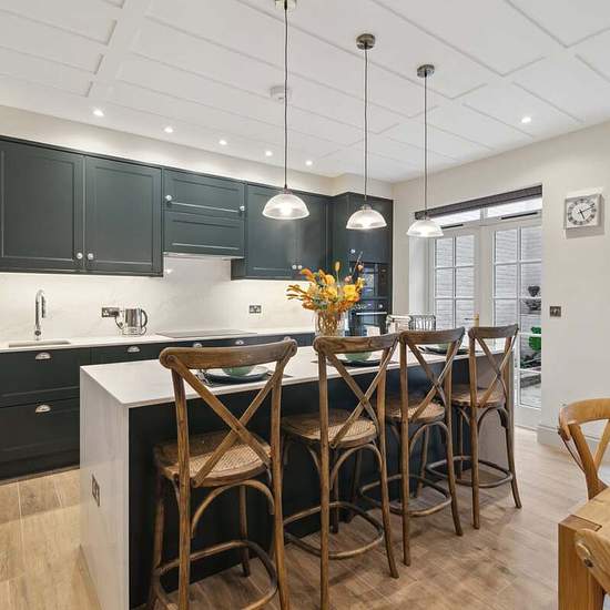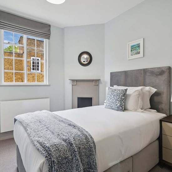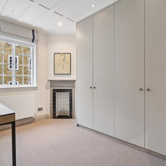 This charming four bedroom townhouse is located in the heart of London's Westminster village. Spanning approximately 2,702 sqft over five floors, the house welcomes you through a substantial entrance hall on the ground floor, which doubles as a library with a fireplace and beamed ceiling. This floor also includes a cloakroom, laundry room, eat-in kitchen with a walk-in pantry, and access to a courtyard garden. The first floor features two spacious reception rooms, currently used as a dining room and a sitting room, separated by a large landi...