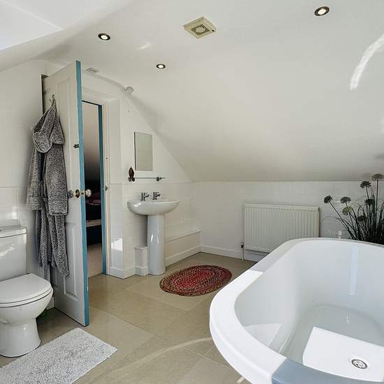 Fantastic four bedroom dormer bungalow to let on Dolphin Court which is just a five minute walk to New Quay beach. Property consists of entrance hallway, open-plan kitchen diner with integrated electric oven & hob, dishwasher and fridge/freezer, ample space for table and chairs with french doors leading out in to the enclosed rear garden, lounge, two double bedrooms and a shower room with WC, basin and walk in shower. Upstairs there are two bedrooms one being a fantastic master bedroom with large Velux windows and a spacious en-suite with fr...