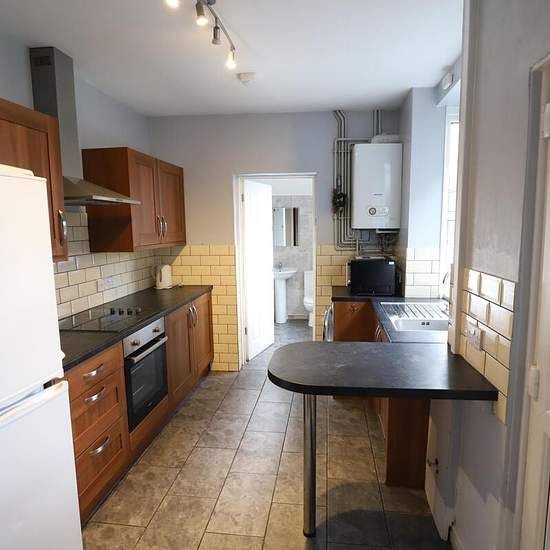 STUDENTS - AVAILABLE FOR SEPTEMBER A Very nice student property. Gas, water and electricity bills included (subject to fair usage allowance). Front entrance leads to a hallway leading to lounge with sofas, modern fitted kitchen with integrated oven and hob, over hob extractor hood, fridge freezer, washing machine. Bathroom with bath and shower. Downstairs bedroom is a good sized double with bed, wardrobe and desk. Upstairs is a huge front double bedroom with bed, wardrobe and desk, to the rear is a good sized double bedroom and a smaller ...