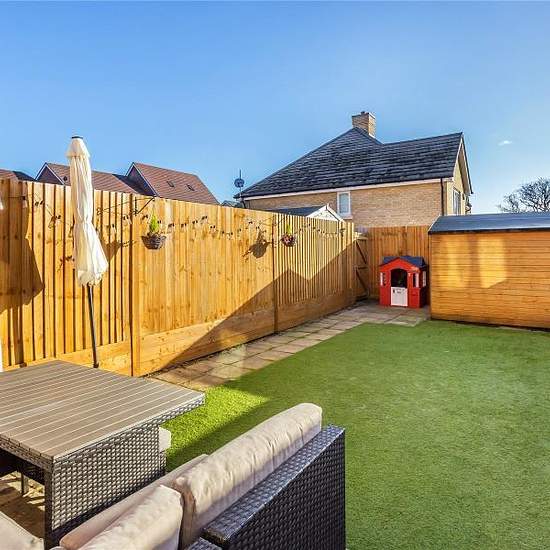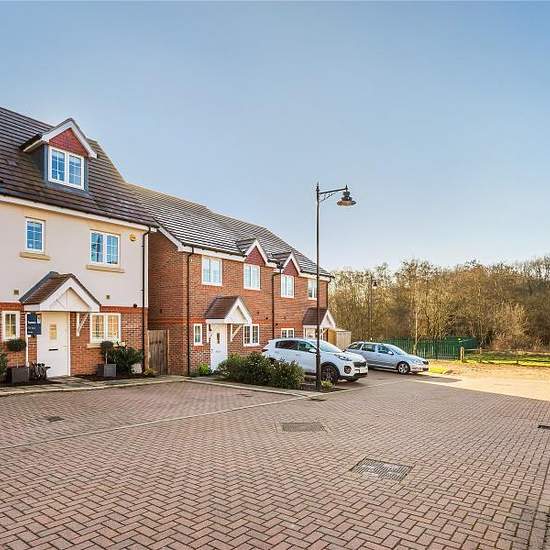 This spacious end-of-terrace home is located in the Brookwood Farm Development in Knaphill, just a short walk from Brookwood mainline station, offering easy access to London Waterloo.The property is spread over three floors, with the top floor featuring a master bedroom with built-in wardrobes and an en-suite shower room. The first floor includes three more bedrooms and a family bathroom. On the ground floor, there’s a modern kitchen with integrated appliances, and a lounge/dining room that opens onto a south-facing garden with artificial gr...