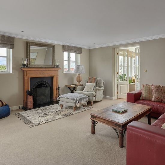 The house forms part of a private drive of just three properties with well-proportioned rooms and a flexible layout together with traditional elevations of brick, stone and flint beneath a slate roof. The generous accommodation includes a kitchen/ dining room opening into a superb orangery with a wood burning stove. This is a magnificent room extending to about 26'1/7.95m with two sets of double doors opening out to the terrace and garden. The bespoke kitchen (with an adjoining utility room) is fitted with a range of cabinets and pan drawer...