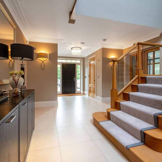 Incredible 5 bedroom/5 bathroom detached house with swimming pool Modern Georgian style home set in 5 acres with stunning interiors Set behind electric gates with ample parking and double garage with studio/gym Stunning open-plan kitchen/family/dining room Beautiful drawing room and separate dining room All rooms with French or bi-folding doors to terraces and grounds Exceptional grounds with lake with fountains, island, rolling lawns and woodland Easy reach of Woking Station with fast links into London (Waterloo) An incredible Georgian styl...