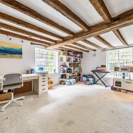 This exceptional Grade II listed residence, believed to date back to the late 15th century, is a rare example of a Medieval Hall House full of charm and character, caringly renovated for comfortable family living. Set in the heart of Horsell Village, it enjoys a central location within walking distance of local shops, schools, and Woking town center with its mainline station offering fast links to London Waterloo. The property offers generous and atmospheric living space, beginning with a striking beamed reception hall featuring an original ...