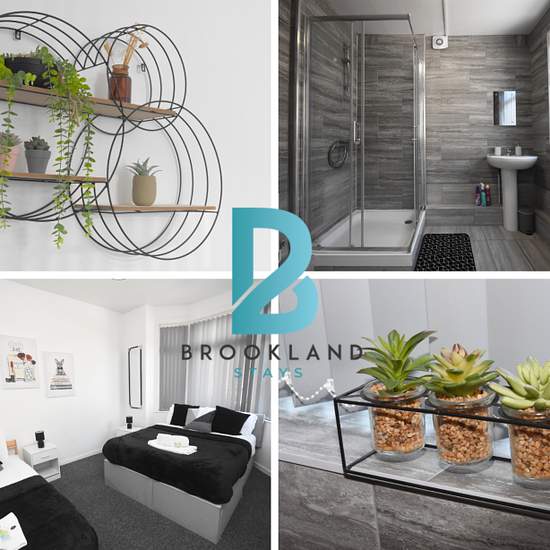 Welcome to your stylish home away from home in vibrant Coventry! This thoughtfully designed studio apartment features a luxurious 5 bedrooms and a kitchen, perfect for family vacations or visiting professionals. Fresh linen WiFi available Fully equipped kitchen The space Spacious 5-Bedroom Apartment Sleeps Up to 13 Guests Bedroom 1 – 1 King Bed Bedroom 2 – 1 King Beda and 1 Single Bed Bedroom 3 – 1 King Bed and 1 Single Bed Bedroom 4 – 1 King Bed Bedroom 5 – 1 King Bed Living Room – 1 Sofa Bed 2 Bathrooms – Equ...