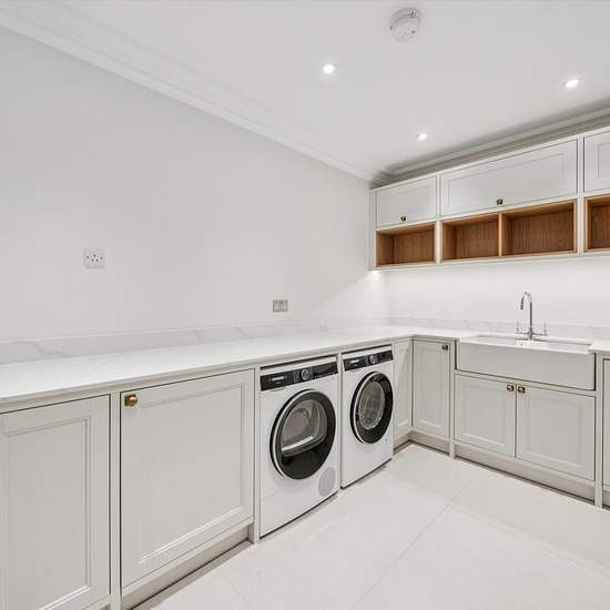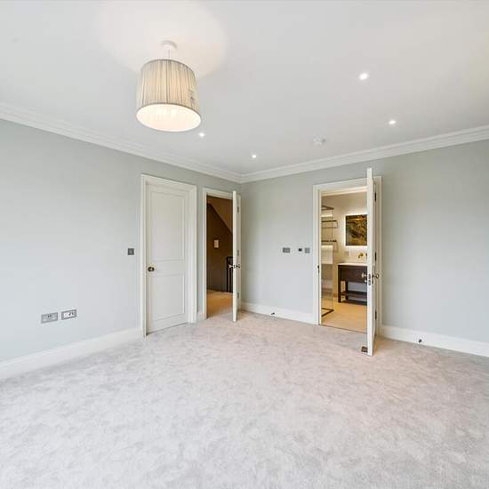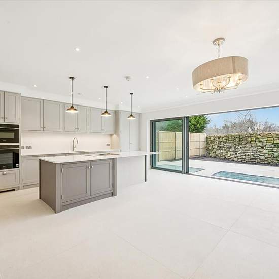 This exceptional newly built family home has been completed to an impeccable standard throughout, showcasing high-grade appliances and sleek, contemporary finishes. Accessed via a grand gated driveway, the ground floor opens into an elegant reception room featuring bespoke joinery offering excellent storage and beautiful herringbone wood flooring. This leads seamlessly into the light-filled, expansive open-plan kitchen and dining area, designed for modern family living and entertaining. Large sliding doors open onto the attractive garden, id...