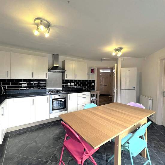 STUDENTS - AVAILABLE SEPTEMBER A fully furnished 5 bedroom detached property with driveway and garage, not far from Keele university on the popular Milners Green site. (Includes Gas, Water & Electricity - subject to usage allowance) Front Entrance hall leads to a large fitted kitchen/ diner with washer, fridge freezer, integrated oven and hob. Patio doors through to the rear garden. Lounge with sofas, coffee table and TV unit. Downstairs double bedroom with bed, wardrobe, desk and drawers. Upstairs, the master bedroom has an en-suite showe...