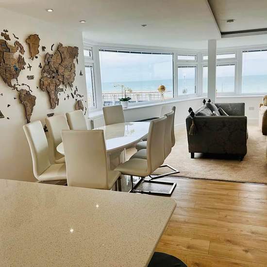 Stunning 5 Bedroom Proeprty on Worthing Seafront with direct Seaviews 5 double bedrooms with 3 Bathrooms Two Modern Fitted Kitchens Front and Rear Gardens with Hot Tub Ample Parking Spaces for Several Cars Large Living Area with 180 views of the Seafront Good Location not far to Worthing and easy access to Brighton 700 Bus stops right outside servicing Brighton one way and Littlehamton the other way This is a lovely Well Presented Contemporary and Modern 5 Bedroom House situated on Worthing Seafront with Direct Sea Views with 3 Family bathro...