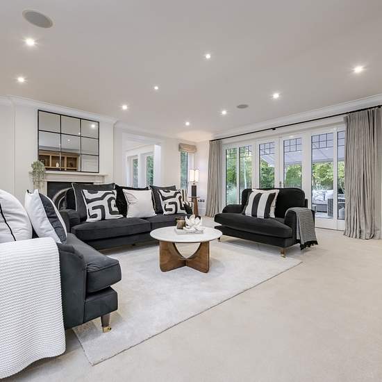 This substantial home features a large entrance hallway which leads you to the main living room opening into the sunroom; both of which have views and access over the garden. You can also access the study and dining from the living room. Across the hallway is the spacious open-plan kitchen with a large central island, perfect for family life and entertaining. This flows into a welcoming family room with doors leading out to the terrace. The ground floor also includes a generous study, a utility room, and two cloakrooms, providing both comf...