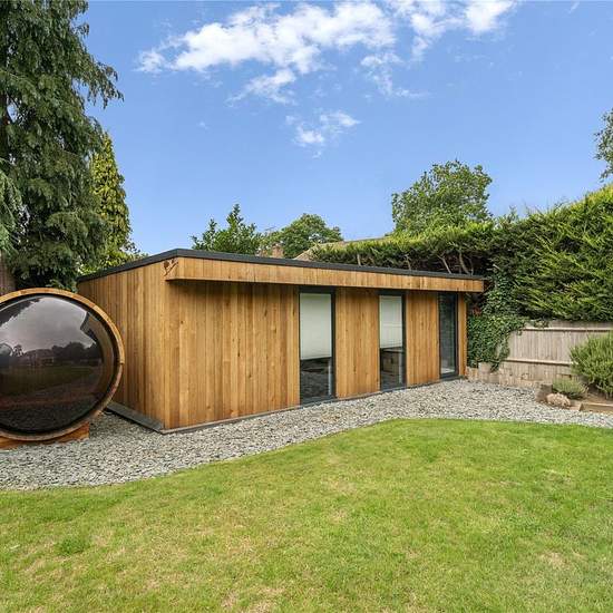 An impressive executive detached family home featuring six spacious bedrooms and five modern bathrooms. The heart of the house is a stunning open-plan kitchen, breakfast, family, and dining area, perfect for both everyday living and entertaining. Outside, enjoy a generous southwest-facing garden complete with a large terrace, a heated swimming pool, and a versatile studio space. The property also benefits from a large driveway offering ample parking, alongside a covered carport.