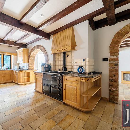 The ground floor consisits of the entrance hall, four reception rooms, a large open plan fully fitted kitchen/breakfast room with a range of integrated appliances including an AGA cooker, utility room and conservatory/dining area which leads out onto the large landscaped rear garden. The first floor offers a master bedroom suite accessed via its own private staircase with en suite bathroom. There are 5 further double bedrooms and a family bathroom. The house has a very large private landscaped garden to the rear, integral double garage amd a...