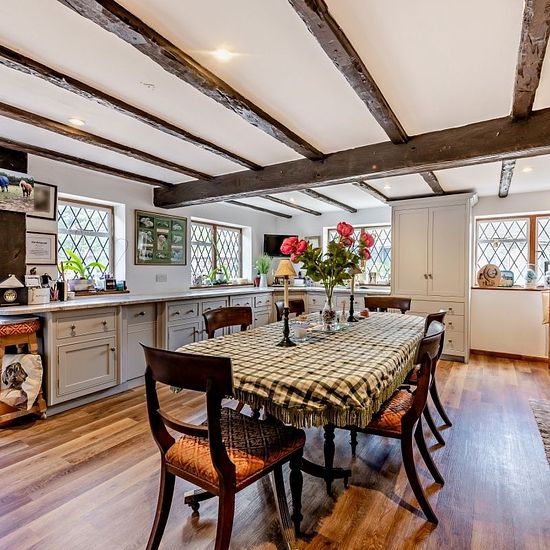 This impressive double-fronted period residence is available to rent on a short-term basis, beautifully combining modern comforts with an abundance of original character features. Leaded glazing, exposed wall and ceiling beams, and original fireplaces create a warm and inviting family and entertaining environment. The ground floor comprises a spacious kitchen/breakfast room, utility room, family room, formal dining room, and a generous main reception room with an open fireplace. On the first floor, the principal bedroom benefits from fitte...