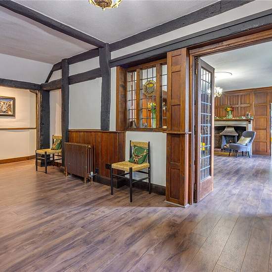 Priory House was built around 1530 on the foundations of what is thought to have been the original C13th Priory. Priory House is surrounded by over 3 acres of landscaped gardens and paddock space, with mature trees and hedges offering complete privacy. The total accommodation extends to 7,000sq ft. The magnificent grade II listed, 7 bedroom, 6 reception room home has a wealth of architectural detail from the original barrel chimney, three quarter panelled drawing room with glass fronted bookcases, to the beamed dining room with William Morri...