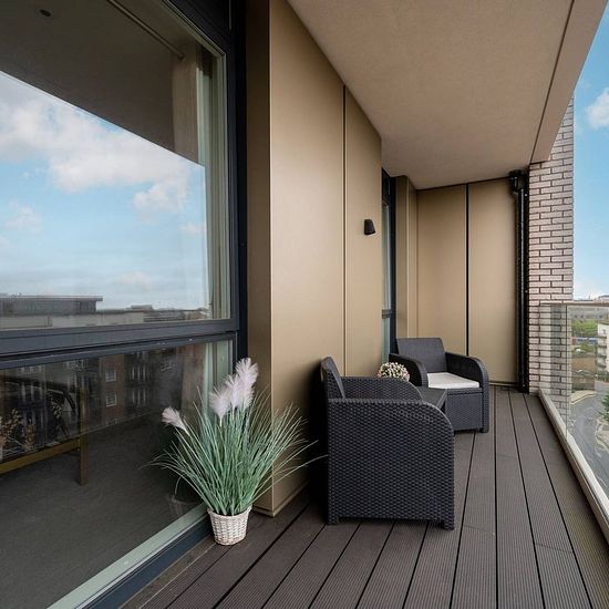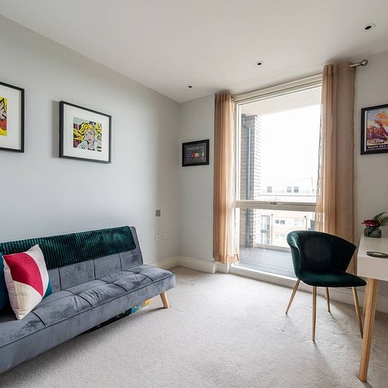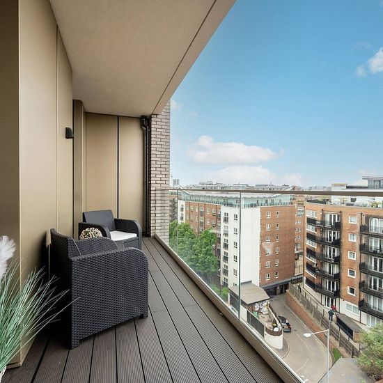 Outstanding 2 bedroom 6th floor flat Set in a stunning new development with central gardens Open-plan reception room with space to dine Modern kitchen with integrated appliances Main bedroom with en suite shower room Access to a private balcony Stylish bathroom with ceramic tiling and underfloor warming Residents' Gym and Concierge service Available with Zero Deposit Finished to an exceptional standard throughout, this gorgeous 2 bedroom 6th floor flat is set within a stunning new development, boasting an open-plan layout with modern kitchen...