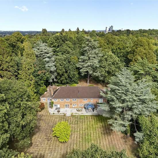 An impressive and refined eight-bedroom gated family residence, featuring a sweeping driveway and situated on approximately 3 acres of landscaped grounds and woodland. This property provides a perfect blend of privacy and seclusion, while remaining close to the Basingstoke Canal and the convenient amenities of St Johns village. EPC Rating: C.