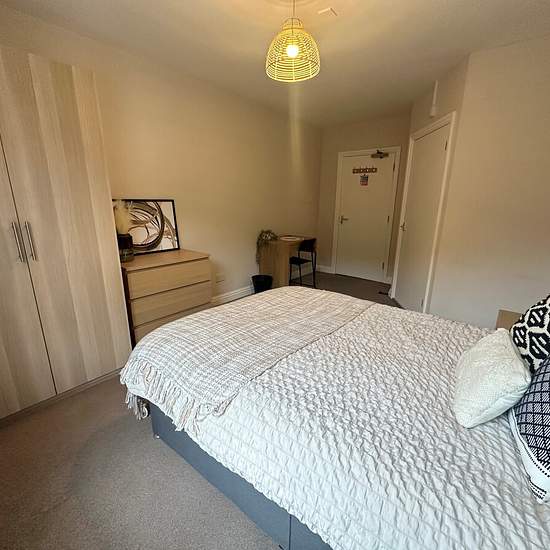 Zero Deposit Guarantee Available Welcome to St Andrews this unique and modern HMO that is professional and friendly. Located in the heart of the historic town Droitwich Spa, this well-maintained and distinctive property offers high-quality accommodation, perfect for professional tenants seeking comfort, space and convenience. This spacious double bedroom is well-presented and comfortable. The room is furnished with a double bed, bedside table, wardrobe, chest of draws and a desk. This room is fit with a private ensuite shower providing add...