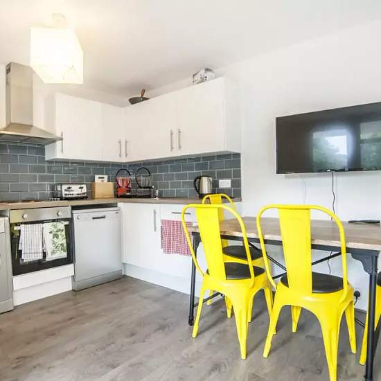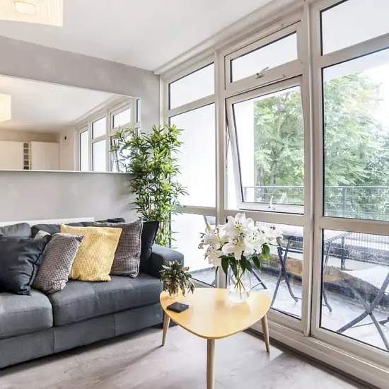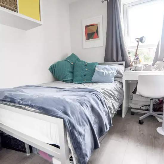 Bedroom 4 comes furnished with a double bed and a desk. There are plenty of options for storage and you have a large window which lets in natural light. This bright and modern 4-bedroom flat in on Hind Grove comes with a fully equipped kitchen and has a dining table with space for 4 people, perfect for sharing a meal with your flat mates. There is also a couch and a sizable balcony with a view of the interior courtyard. All rooms have large windows which let in a lot of natural light and are furnished with a wardrobe for storage. Located in ...