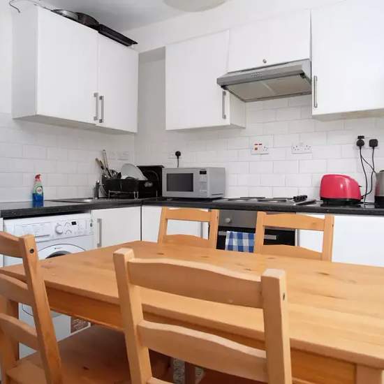Bedroom 1 is a ground floor room with a double bed. This room is a luminous space with white walls and wooden floors. There is plenty of space for storage so you can definitely make the most of the space available. This is a room available in a shared 4-bedroom apartment located in London. The apartment is fully furnished and features an equipped kitchen, a private washing machine, and a balcony or terrace. Central heating is installed, and all bills, including electricity, water, gas, WiFi, cleaning service, heating, and council tax, are in...