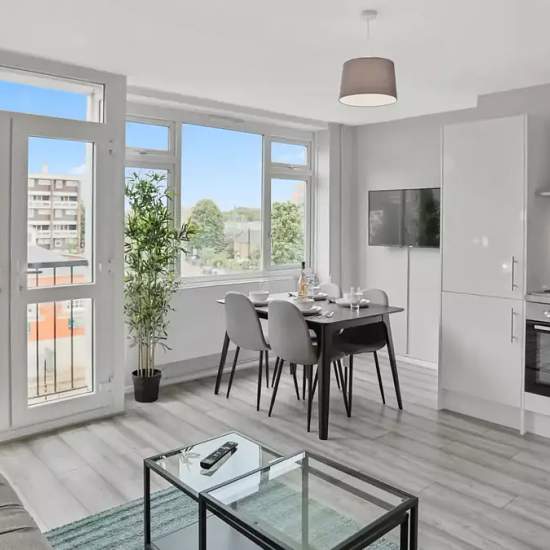 Are you looking for comfortable accommodation in Weavers, London? This shared 4-bedroom apartment provides an excellent living space with all bills included. The apartment is exterior with a balcony or terrace and comes fully furnished with a TV and common washing machine. The equipped kitchen features modern amenities like a dishwasher and oven. Spotahome has checked and verified this property, providing peace of mind. Located in the lively area of Weavers, this apartment offers proximity to notable attractions such as Spitalfields City Far...