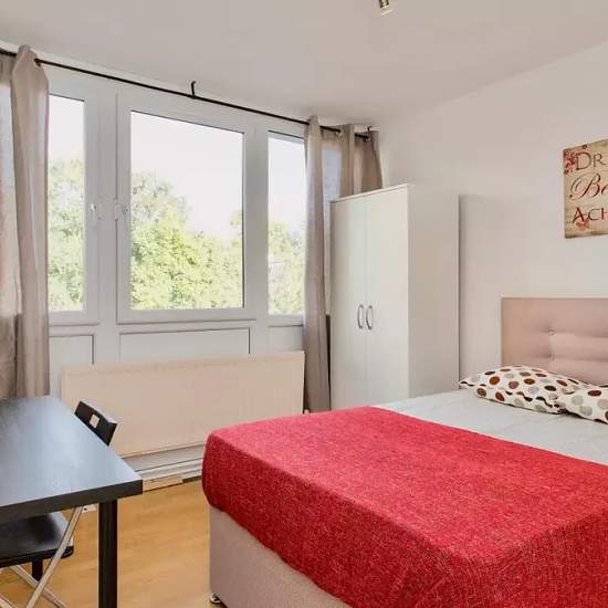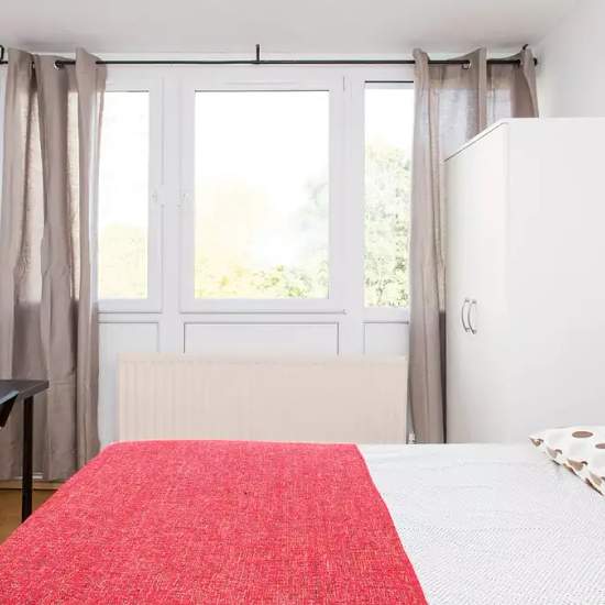 This cosy bedroom is furnished with a double bed, a desk and a wardrobe while a large window make sit bright with natural light. There are rooms for rent in this 5-bedroom apartment in Roehampton which is 88 m² and has an equipped kitchen, a bathroom and central heating, ideal for winter. This is a spacious apartment equipped with everything you need. Home to the University of Roehampton, Putney Heath Park and Wimbledon Common, Roehampton is a vibrant area with lots to offer. With a bus station nearby, residents have easy access to the city ...