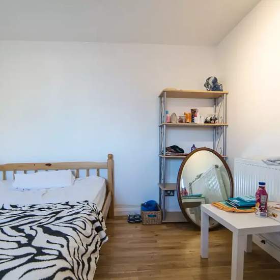 Bedroom 2 is lively, with large windows that let in plenty of natural light, and a double bed. There is heating for the chilly winter months, and in the summer you can open the windows. The desk available is the perfect place to work at. Book this room if you desire a peaceful space to work and write. The cosy nest that beats the stress Because everyone enjoys a peaceful space Will I like it here... We think so. You'll feel right at home in this cosy apartment. Hang with the flatmates in the spacious kitchen, or have some alone time in your ...