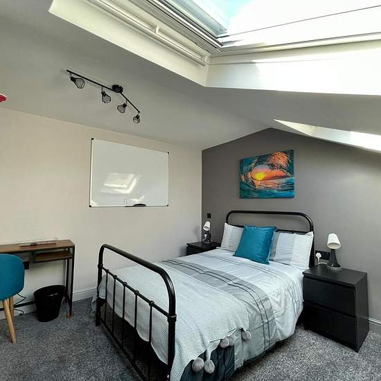 Maison has a vacancy for a room in this immaculate 8 bedroom House Share in a great location in Swinton, close to the town centre. The room has its own work space coming with a desk and whiteboard. The room is fully furnished and has recently been refurbished, the decor is delivered to a high standard. Within the property is a recently installed new kitchen which comes with all utensils, washer/drier, 3 fridge freezers and plenty of cupboards for extra storage and space. Each room also has a 32-43 inch television mounted on the wall, comi...