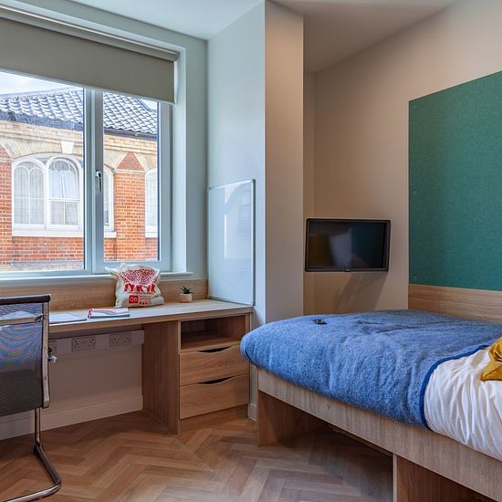 No deposit required All-inclusive rent Ensuites and studios available 17 - 21.5 sqm Smart tv included 3/4 double bed 17-19 sqm On site gym Cinema Kitchenette read more show less *STUDENT PROPERTY* William H Brown present this purpose build student accommodation in the heart of Norwich, a 5 minute walk to Norwich University of the Arts campus, and a short bus ride to UEA. With a gym, cinema, podcast studio, creative suite, gaming room, getting ready room, study rooms, lounges, on site laundry, a private dining room, and all-inclusive rent, t...