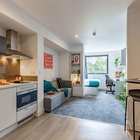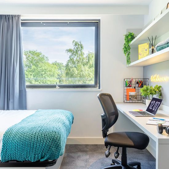 Zero Deposit Guarantee Available Experience a vibrant and comfortable student lifestyle at True Manchester Salford. A diverse array of room types cater to different preferences, including the True Sky Studio Plus, True Superior Studio Plus, and True Studio Plus, amongst others. Each contains a double bed with a True mattress, providing ultimate comfort after a busy day. Space will never be a concern with the ample storage area, including under-bed storage and wardrobe and storage space. Complete assignments with ease at your desk and chai...
