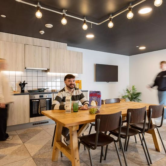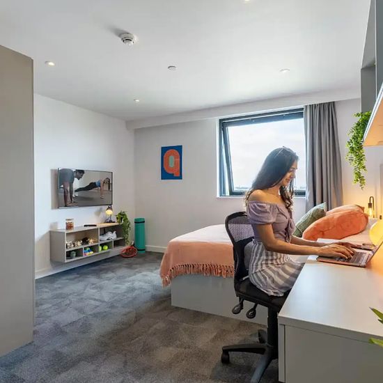 Zero Deposit Guarantee Available Experience a vibrant and comfortable student lifestyle at True Manchester Salford. A diverse array of room types cater to different preferences, including the True Sky Studio Plus, True Superior Studio Plus, and True Studio Plus, amongst others. Each contains a double bed with a True mattress, providing ultimate comfort after a busy day. Space will never be a concern with the ample storage area, including under-bed storage and wardrobe and storage space. Complete assignments with ease at your desk and chai...