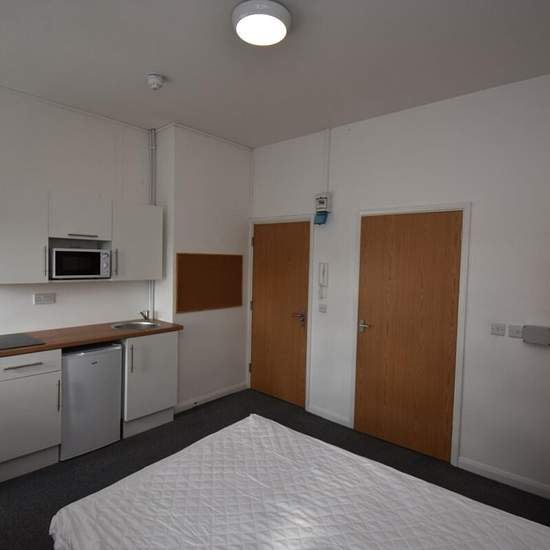 Furnished En-suite Bedrooms Professional Tenants Gas Central Heating Double Glazing Town Centre Location Close to Commuter Links All Bedrooms with Ensuite Shower Suites Communal Kitchen / Dining Area on Each Floor Large Communal Lounges Early Viewing is a Must ***ALL BILLS INCLUDED*** **WIFI INCLUDED** Large Prominent Town Centre Building Conversion. The Studio is fully furnished to High Standard. Each Studio Bedroom benefits from ensuite with three piece shower suite in white. Queen size bedroom. Kitchen area with hob, microwave, fridge, s...