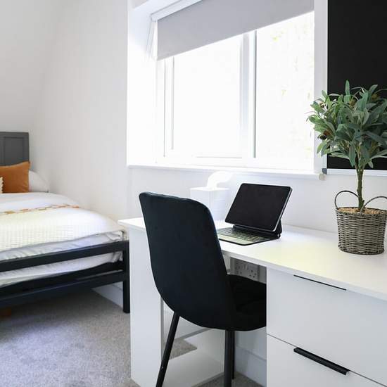 Available: Now Modern fully furnished double bedroom to rent! Striking, brand newly refurbished seven-bedroom house, located in Stanmore and minutes from nearby shops and commuter links to the Winchester Town Centre, and the University of Winchester campus! This immaculately refurbished house is positioned in Wykeham Place, Stanmore, and within 25-minutes walk from the University on Winchester campus, and Winchester Town Centre. The house comprises seven double bedrooms, furnished with double bed, 6 stylish bathrooms (5 of which being en-sui...