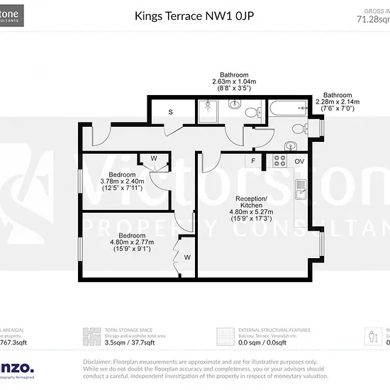 - 2 bedroom rental homes in Camden Town cost on average £4,377 and are on average 723 ft²