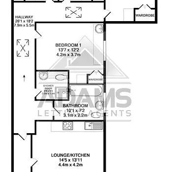 - 1-Zimmer-Wohnungen in Bournemouth kosten im Durchschnitt 803 £ und haben eine durchschnittliche Größe von 311 ft².